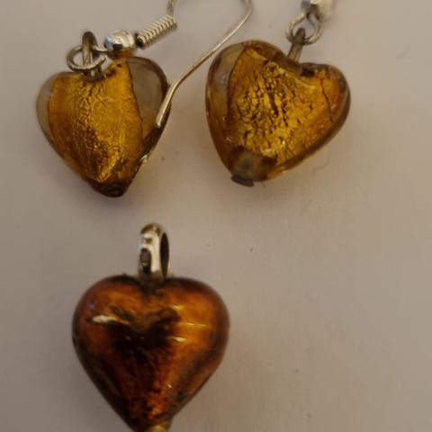 Selger hjerte smykke i sølv med øredobber som aldri er brukt