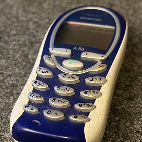 Siemens mobiltelefon A 55. Følger med orginal lader og etui til telefonen. Jeg har ladet den opp og den ser ut til å fungere. Vet ellers lite om den..fra et dødsbo. Men ser ut til å være ny i januar 2003.