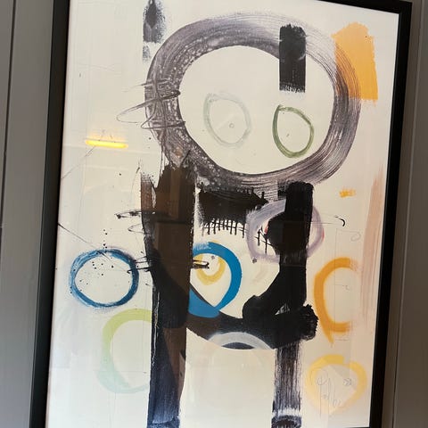 H 103cm, B 73cm (med ramme). Personlig hilsen fra kunstneren på baksiden. KR 800.-