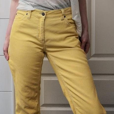 (Kunne godt vært større, spesielt trang i livet. Kan være vintagesizing = preferanser). Målebåndet: Tvers over livet ca 33cm. Rise ca 30cm. Innerbenslengde ca 73cm.