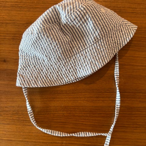 Stripete solhatt med snøring. Str 86/92