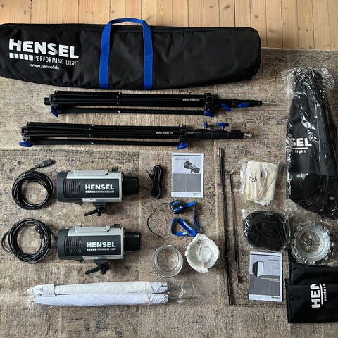 Elinchrom Quadra pro batteridrevet blitz med softboks selges. Styringsenhet med batteri, fjernkontroll og softboks følger med. Alt du trenger for å komme i gang med studio fotografering inne eller ute.