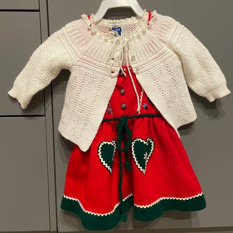 Søt strikket festdrakt for barn ca. 6-8 år.
