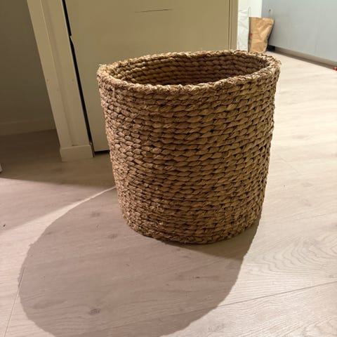 4: flettet potte, str 35X35, kjøpt på IKEA (350kr)
