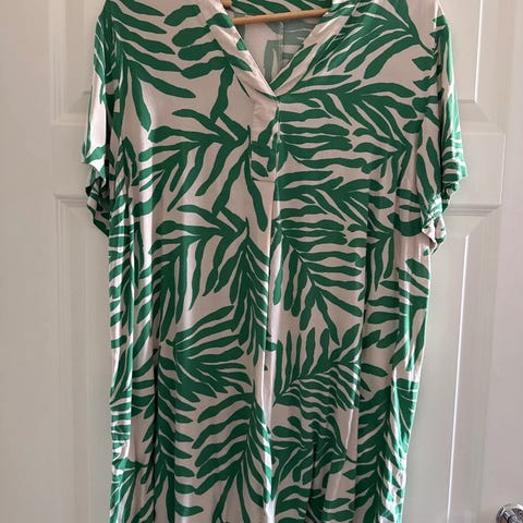Zhenzi topp i flerfarget mønster for damer i størrelse 46. Laget av 100 % viskose, med knappelukking foran og elastisk kant nederst. Passer til hverdagsbruk.
