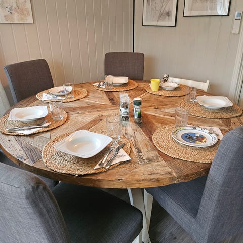 Bordet har naturlige bruksspor etter alder, men fremstår fortsatt pent og solid.