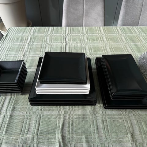 Fire tallerken, matt mørk grå, 30x18 cm. Omtrent ikke brukt. Hele og pene.