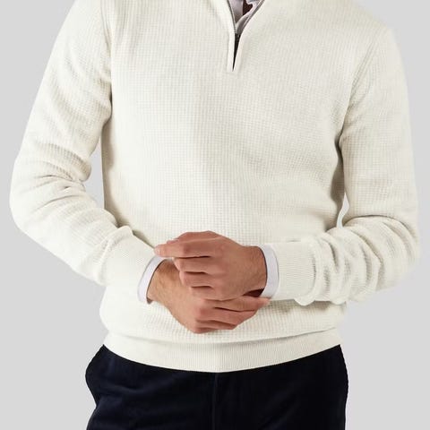 Marcelo Polo fra These Glory Days er en strukturstrikket polo laget i ren merino. Har en flat strikket krage og ribbestrikkede mansjetter. Lett å style opp og ned.