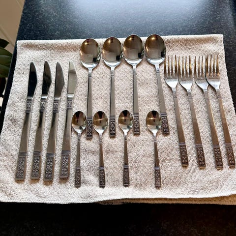 Søkeord: bestikk, frokost, lunsj, festbord, selskap, borddekking, servering, retro, vintage, fra bestemors hus