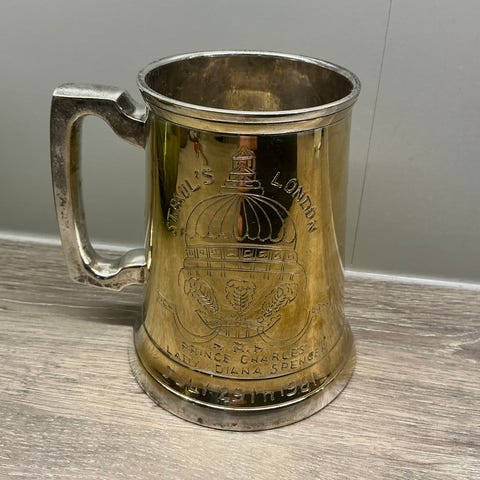 Flott stor asjett laget i forbindelse med Charles og Dianas bryllup i 1981.