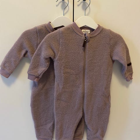 Selger to ullbukser og ullfleecevotter i merinoull fra Refleks, helt ubrukt og med prislapp på.