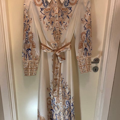 Nydelig og helt ny Chi Chi London kjole i en skjønn sølvrosa farge. Den er størrelse 12, men jeg tror at det er 38/40 M/L.