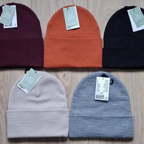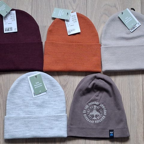 Klespakke med luer, skjerf, hansker