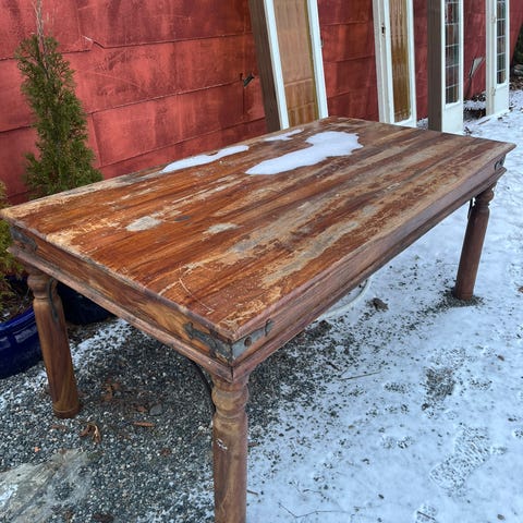 Godt brukt bord, men solid og i grei stand.