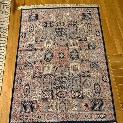 Rød tynn unik pen teppe som ligner på et persisk teppe.