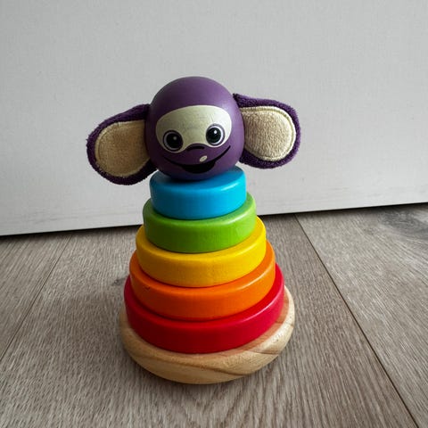 Pent brukt stabletårn. Passer like godt til lek som til pynt på barnerommet