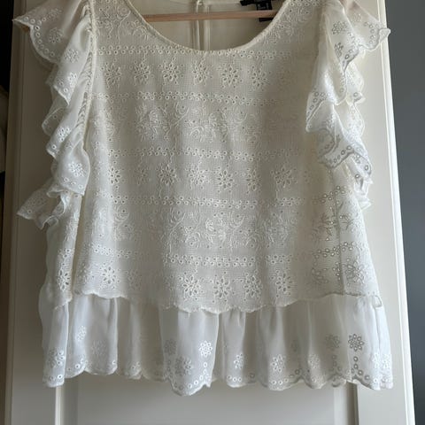 Vakker Line of Oslo sommerbluse med brodert mønster. Kun brukt et par ganger, se bilder. Kan besiktiges/hentes på Strømmen, alternativt sendes med Postnord kr 69,-