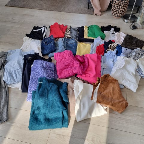 Div gensere, bluser, topper, kjoler, bukser. Må hentes, da det er for mye til å sendes. Kan være behjelpelig med frakt i området.
