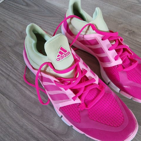 Veldig tøffe og lette røde Adidas sko. Står str 42 i sko. Jeg bruker 41. Ble for små for meg. Merket Climacool. Minimalt brukt pga feil størrelse