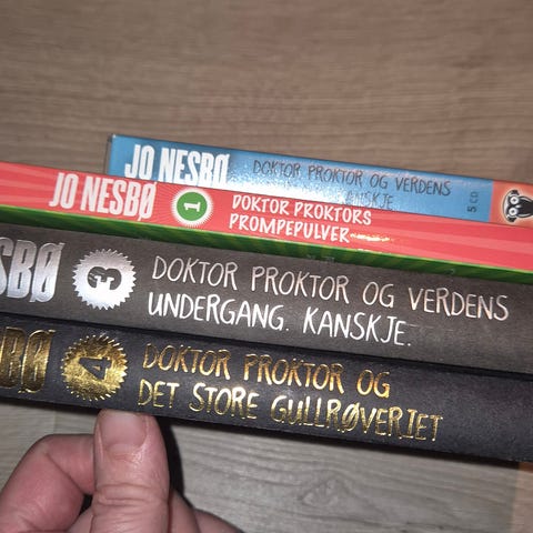 2 Kjempefine barnebøker I serien Doktor Proktor, av Jo Nesbø, selges samlet.
