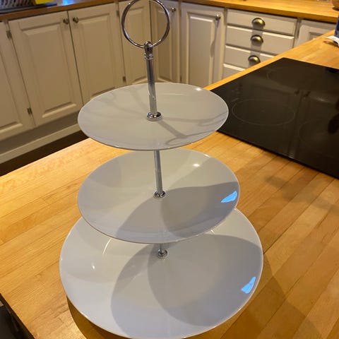 Selger dette etasjefat et med tallerkener fra Porsgrunds porselen.