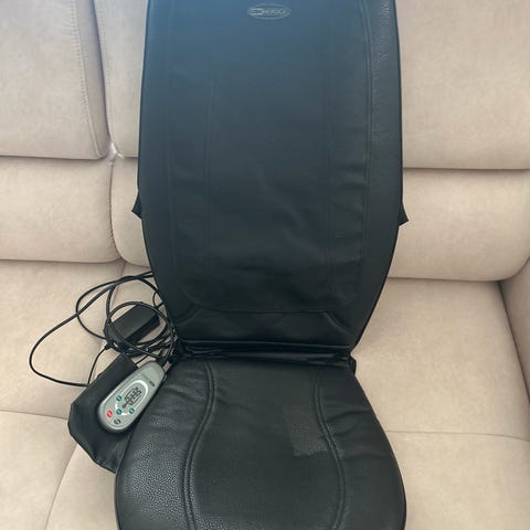 OBH ryggmassasjemaskin uten varmefunksjon. Den gir god og avslappende massasje for stiv og øm rygg, passer perfekt til bruk i stol eller sofa.