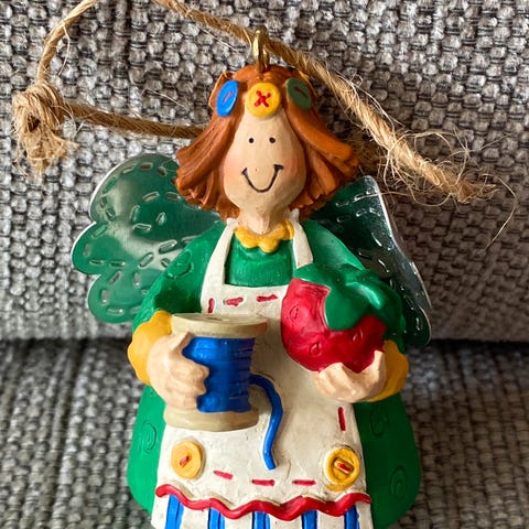 Denne kjøkken engelen fra Gooseberry Patch er omtrent 6.5 cm høy.