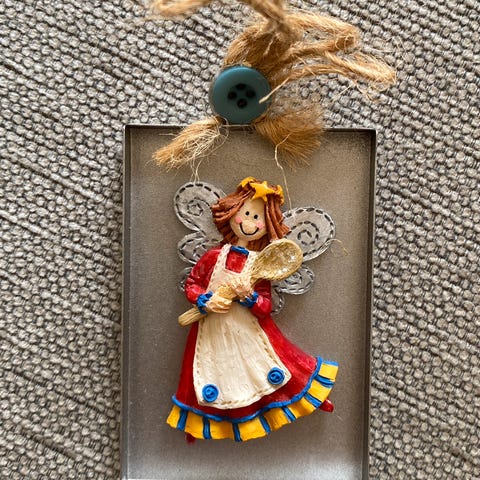 Denne kjøkken engelen fra Gooseberry Patch er omtrent 6.5 cm høy.
