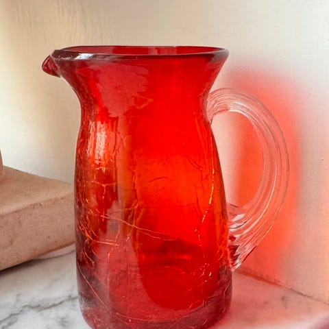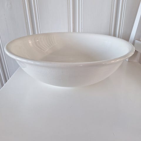 Måler ca. 14 cm i høyden. Har vanlige bruksspor som som streker/risser i overflateglasuren, etter normal bruk gjennom mange år.