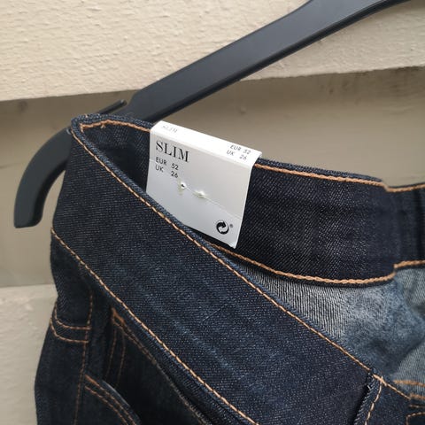 Modellen er ganske rett /slim med litt stretch i stoffet.