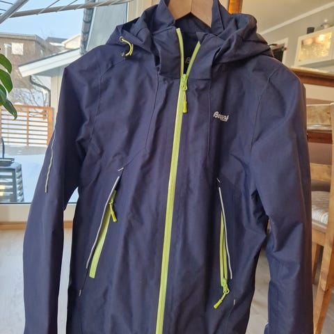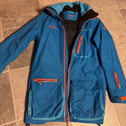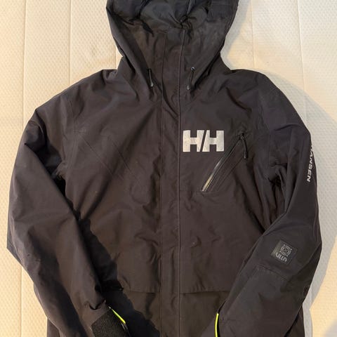 Helly Hansen ski jakke i turkis med gule detaljer. Str L. Pent brukt.