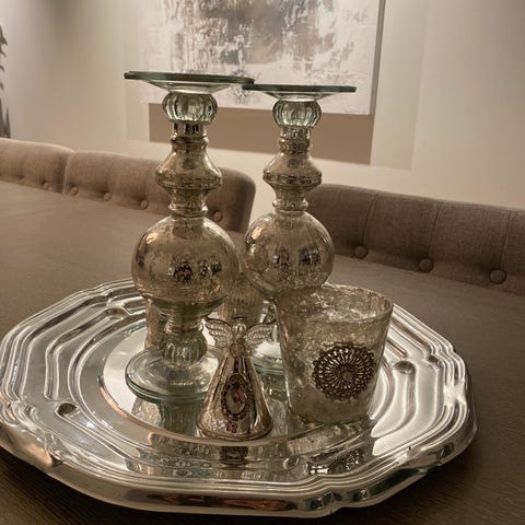 Klunkeflaske med propp og 4 små glass. Flaske og glass er i dyp lilla med sølvfarget dekor. Settet kan brukes til servering av likør eller andre drikker, eller som dekorativt innslag på bord eller i vitrineskap. Helt feilfritt uten en rift. Flaskens høyde 22 cm, glass høyde 4 cm. Høystbydende over kr 190,-.