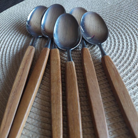 Pent brukt Skaugum skje til servering i det jeg antar er teak, muligens palisander. Se bilder.