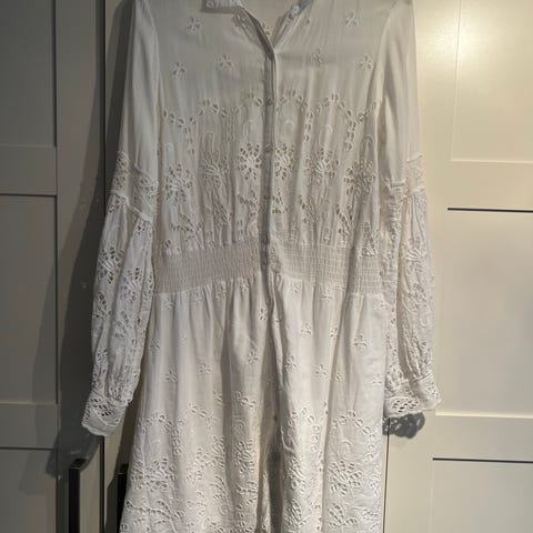 Hvit kjole i blondemønster fra AMISU, str M. Lite brukt.
