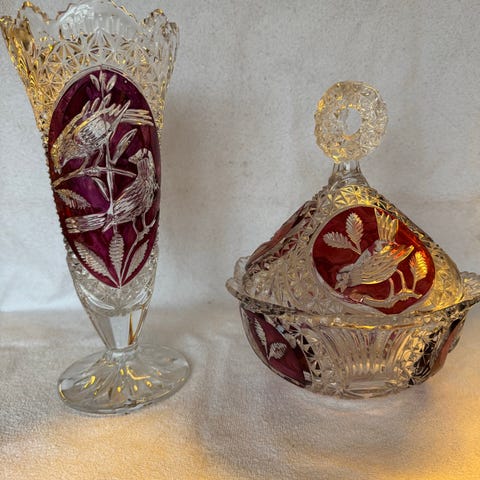 2. Liren skjønn vase /pynte gjenstand med rød gull blomster mønster kr 60. H11 cm