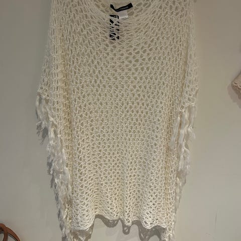 Poncho i en herlig blå farge, med matchende skulderveske og skjerf. Alle er nye og ubrukte.