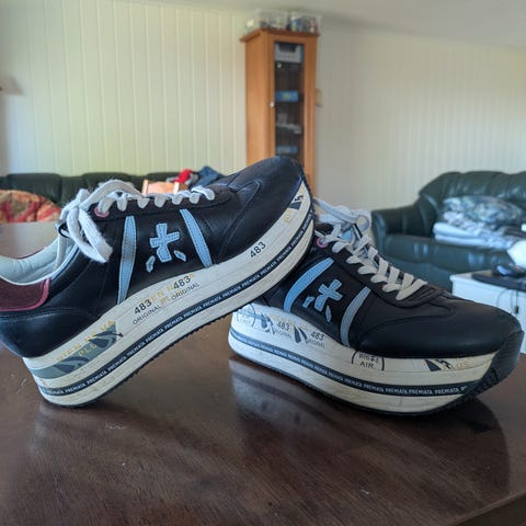 Selger to par sneakers i str 38, de er nesten ikke brukt, sorte kr 180, grå kr 250. Jeg kan sende kjøper betaler frakt, eller kan hentes på Kristianlyst.