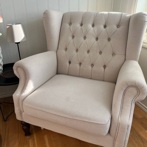 (Lenestol, ørelappstol, skinn, klassisk design)