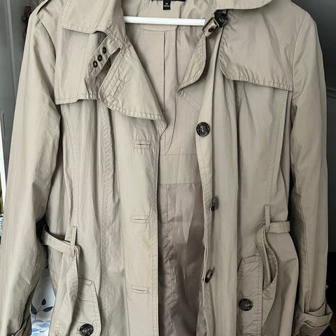 Trenchcoat fra Zara i str M. Lårkort lengde.