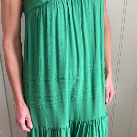 Fresch sur-grønn sommerkjole som er helt nydelig til sommerbrun hud! Kjolen er i 100% bomull og fra Zara. Kostet ny kr.900,- Meget pent brukt - god som ny! Selges for kun 400,-