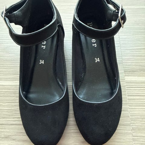 PEPPER Pensko i tekstil med skimmer / glitter. Modellen har en stabil blokkhæl, og en justerbar reim over vristen for best mulig tilpasning.