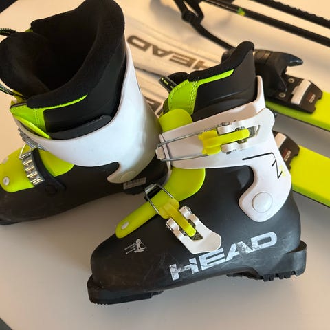 Komplett alpint barnesett – HEAD ski/støvler/staver + hjelm (kun brukt 2 turer)