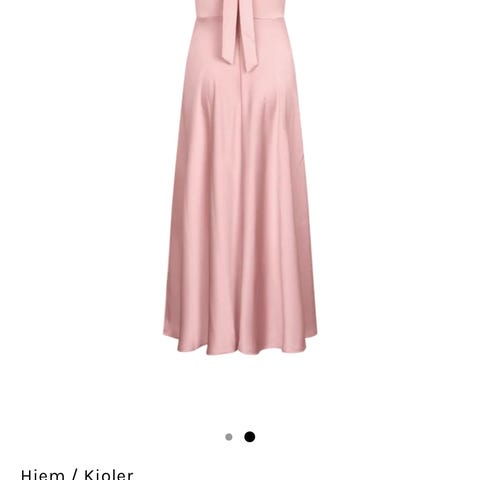 Ny, ubrukt kjole med bar rygg. Kun prøvd på. Lappen henger fortsatt på. 100 prosent resirkulert polyester. På innsiden av kjolen er det svertet av litt bb krem under prøving (se bilde), samme foran øverst på kjolen som ikke synes. De kan vaskes bort. Ny pris var 1999 kr.