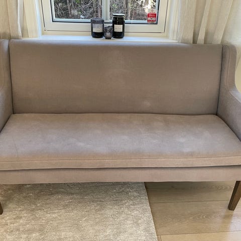 4 mnd gammel sofa selges da den ikke passet inn der den var tenkt. Ser helt ny ut. Valnøtt ben og grått Hallingdal ullstoff. Nypris 53000kr