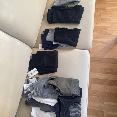 Selger masse fint treningstøy like fint i forskjellige merker til kun 1000kr. Topper er M, og tre stk i L, men ikke store. Tights str M. Verdi ca 5500kr.