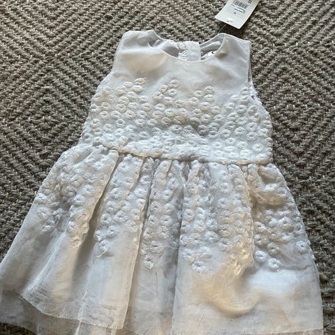 Fine babykjoler fra Cubus i str 62. En søt lyseblå kortermet kjole, og en langermet med hvit og sølv topp og grått skjørt.