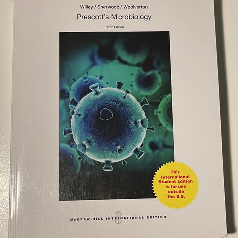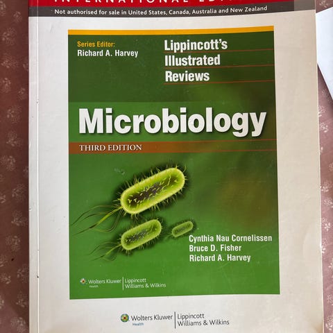 Pensumbok i mikrobiologi på universitetsnivå selges.
