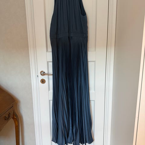 Nydelig mørkblå kjole selges. Brukt 1 gang i bryllup. Veldig fint snitt. Er som ny.