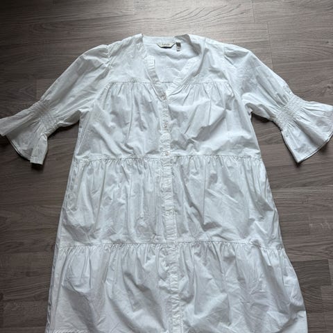 Hvit, luftig sommerkjole i bomull fra Byoung. Pent og lite brukt, uten synlig slitasje.