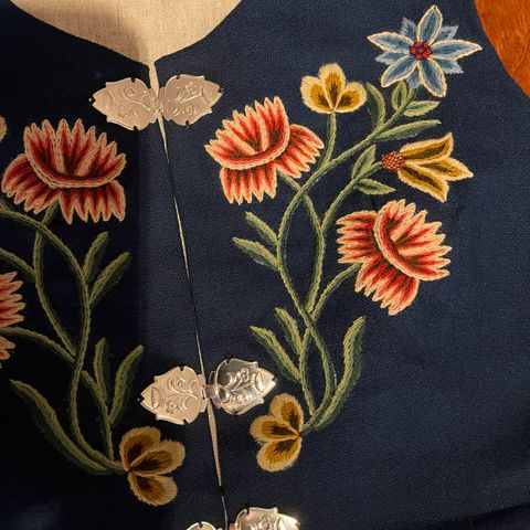 Jeg selger den flotte, pent brukte Nordlandsbunaden min. Selges med forkle, sjal og veske med veskelås.